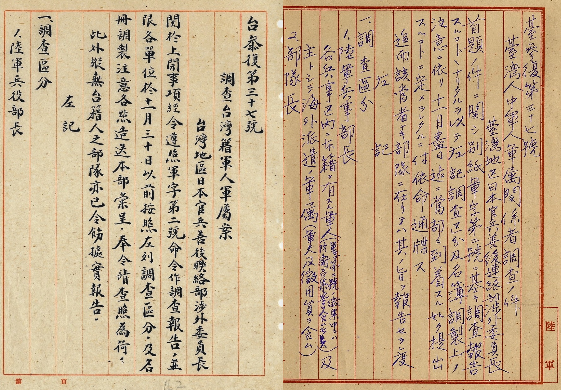 發出這項命令的同時,警備總部還發了「調查台灣籍軍人軍屬案」的行政命令,要求調查對象包括:原籍在各兵役區內的軍人(包含防衛、勤務人員),以及海外派遣的軍屬(包含軍伕及徵用員)。並規定調查內容包括:所屬部隊區分、何種軍役、原籍及名冊調製注意事項,備考欄必須記載是否死亡、傷病及其他事項;調查內容極盡詳細,並限令同年十一月三十日交付調查報告。