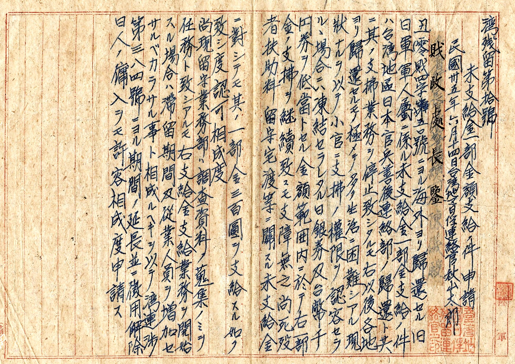 當時,滯外台灣人原日本兵開始陸續由日本及盟軍接運返台,善後聯絡部還會派員在基隆、高雄兩港口負責登記造冊【註六】,進行修正與補充名簿的作業;另外,各地日本兵事部仍繼續進行台籍軍人軍屬的家屬援護業務【註七】。善後聯絡部曾經借用已經移交的部分名簿,前者作業是要讓名簿更為詳實;後者則是為了照顧台籍軍人軍屬的家屬。兩項作業完成後,善後聯絡部就把借用的名簿再完整交給警備總部。