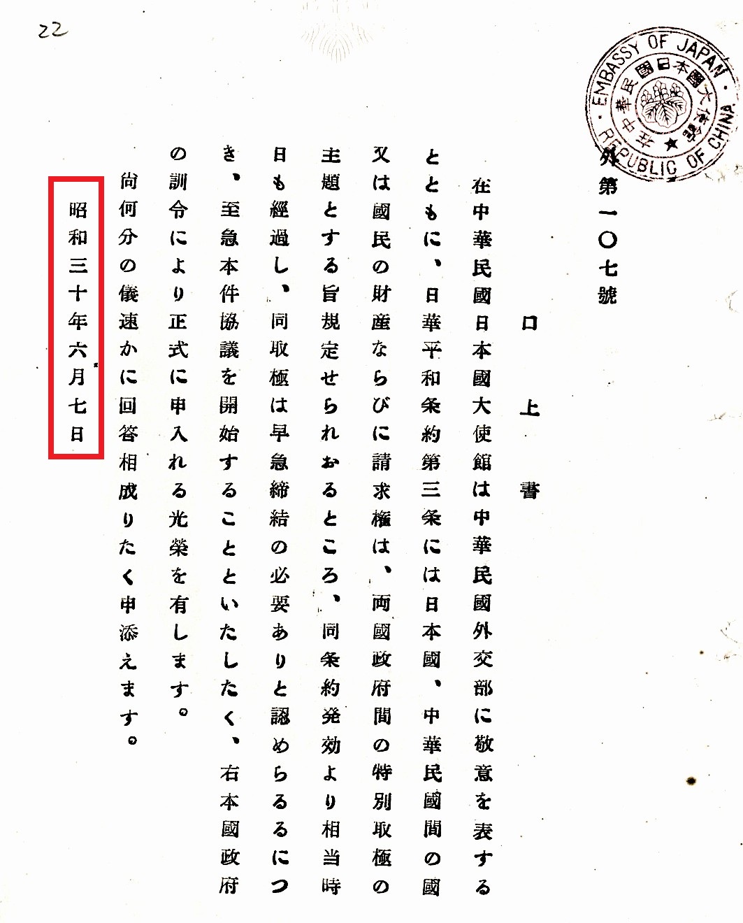 【註二】日本政府根據《日華和約》第三條規定,分別於一九五五年六月七日、一九六○年十一月、一九六二年十二月,一九六五年七月,共計四次主動向台灣的中華民國提出交涉,要求共同協商處理兩國人民財產的問題。