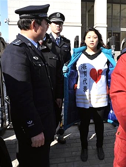 由於目前正值全人代開會期間,北京處於嚴密戒備狀態,抗議的一行人立刻被大批警察包圍。