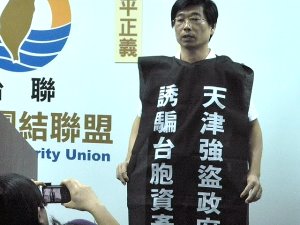 在天津受害不甘心而到天安門前自殺未果生還的台商沈柏勝,五日由台聯主席黃昆輝陪同,站出來向馬政府嗆聲,他說「兩岸投資保障協議」只是幫助中共誘騙更多台商去中國赴死。