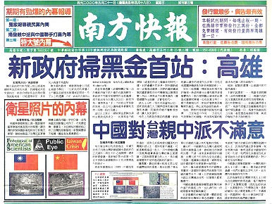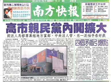 | ●2001/10/20 南方快報平面版第八期,19日晚在民進黨高雄市造勢會場散發,受到熱烈搶閱,預定的一萬份居然不夠熱情索閱。 為了節省派發工資,邱國禎攜同太太親自在現場派發,發生了兩件感人的事情,一、有人在網路上看到現場派發的消息,提前到會場義務協助派發,民進黨派在入口負責維護秩序的糾察也曾抽空協助。二、有三位民眾,已經多次免費收到本報,為表示支持而當場掏腰包贊助。 對於這些熱情主動又不願留下姓名的朋友,我們特地致上十二萬分的謝意。我們也非常希望有更多人助印和協助散發,以及在高雄市以外地區負責發行,歡迎撥手機0929-094755,與邱國禎聯絡細節。 |