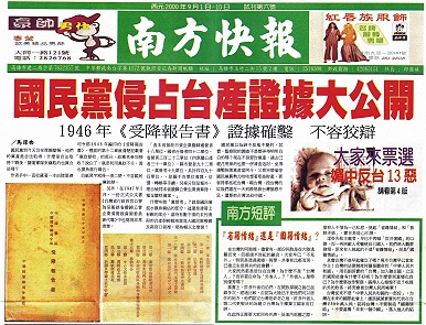 李登輝前總統將於九月一日南下高雄參加台聯的群眾大會,本報當天也要出版平面版一大張,印行五萬份,在現場免費贈送。 由於平面版製作費時,因此,這兩天不及更新網路版內容,敬請海內外朋友見諒。 在年底選舉前,本報計畫陸續出版平面版五至十期,每期依經費情況決定發行數量,歡迎讀者助印。(請使用首頁下方刊登的帳號,或撥國內手機0929-094755聯絡) 2001.08.30 |