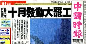 中國時報頭條:「靜坐圍城,扁若不理,十月發動大罷工」,意圖渲染大罷工。這個統派媒體已被倒扁衝昏頭,坐井觀天,一廂情願,自我澎漲。中國時報的員工(包括記者)也罷工,讓報紙印不出來,中國時報的余老闆肯嗎?