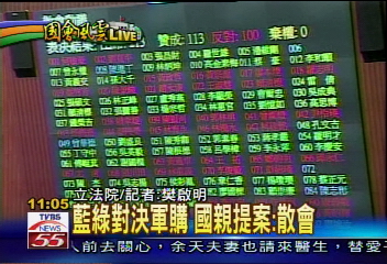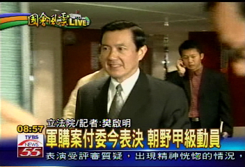 至於,當時佔國會多數的中國國民黨,在黨主席馬英九的帶領下,當然甲級動員反對到底。右圖是2005/12/23的新聞畫面,人家阻擋台灣「凱子軍購」,阻擋扁政府買現在買不到的F-16C/D戰機,每次阻擋都成功,春風得意的咧!