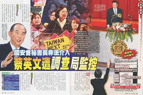 該刊還列出專責監控蔡英文的調査局成員的名單,該項報導刊出後,有評論者在電視談話性節目中證實該名單的正確性。