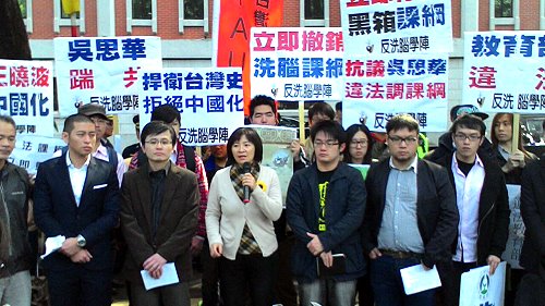 台北高等行政法院日前判決教育部「微調」課綱違法,但教育部部長吳思華卻強硬表示不影響新課綱上路時程;主導課綱微調的王曉波更明確主張應如期實施。對此,反洗腦課綱學生陣線(反洗腦學陣)與台聯青年軍表達強烈的抗議。