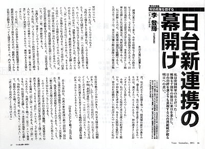 回到台灣、本想終生做個學者的我,意外地踏入了政治的世界。(在拙作《新•台湾の主張》裡彙整了這段過程,煩請有興趣的人自行參考)。