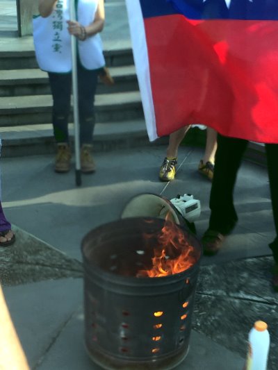 台灣人有權利損毀、焚燒車輪旗,以維護個人與民族的尊嚴。這些可惡的赤藍權貴為了壓制台灣人的反抗,唯恐「偽中華民國」的非法性擴大被披露,他們無恥地緊握那落伍、反動的「國旗」惡法,繼續剝奪台灣人的人權與自由意志表達。