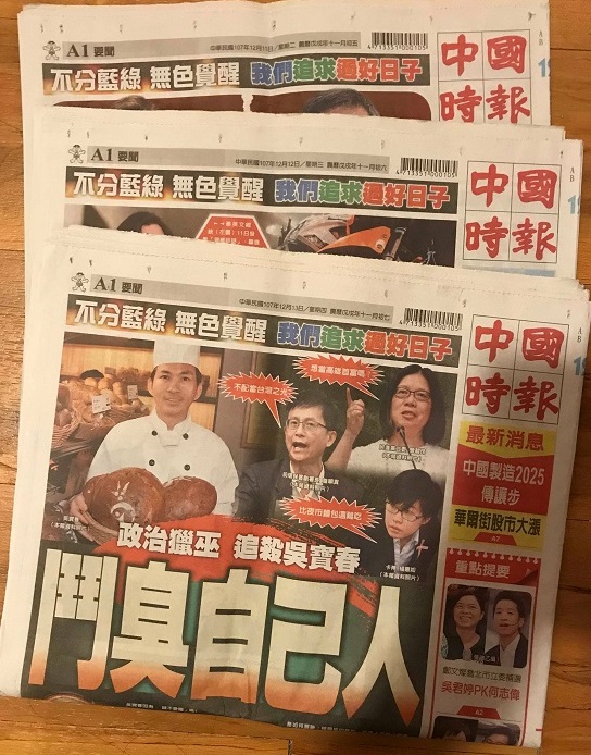 所以,在我們看到台灣著名的親中報紙《中國時報》常常在頭版同時印上「不分藍綠」、「無色覺醒」與「我們追求過好日子」這幾個標語的時候,對它的用心一定是了然於胸。