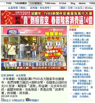 新聞網站頭條,卻是歌頌中國觀光客「強大購買力」的為匪宣傳文章,台灣所謂「泛藍」陣營的精神錯亂現象,莫過於此。(轉載自黑雨部落格)