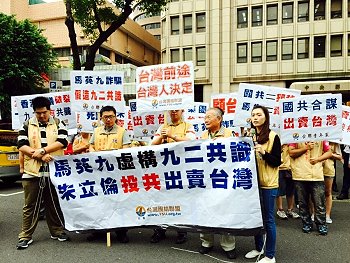 已經沒有統治正當性及公信力的馬英九,29日再度提出所謂「九二共識」的發言,台聯立即採取強烈抨擊及抗爭行動。該黨主席黃昆輝痛斥馬英九一派胡言,為了媚共、降共,竟然敢竄改歷史、顛倒是非;該黨青年軍則率眾圍堵馬英九,與警方發生激烈衝突。