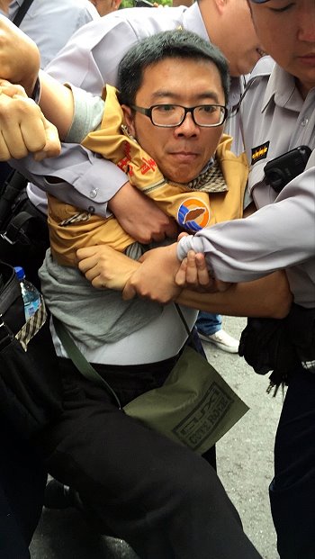 台聯青年軍先於現場召開記者會說明抗議訴求後,青年部主任張兆林以「洽公」為由,欲帶領現場群眾欲闖入陸委會內部,遭到大批警力阻擋,張兆林攀爬上鐵門欲翻越進入時,遭多名警力從後方拉下並壓制逮捕。