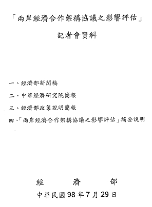 印象中是四月吧,經濟部要中華經濟研究院做 ECFA 的影響評估,評估結果出來後,尹啟銘好像很帶種的跑去出席民間國是會議,席間被陳博志詢問 ECFA 的負面影響,特別是對電子產業的部分,而尹則不願回答。原因當然是負面效應太可怕了,不能公開,於是,經濟部繼續要求中經院一再修正評估模型。