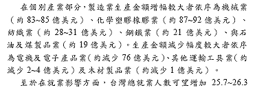 生產金額減少幅度較大者依序為電機及電子產品業(約減少76億美元)