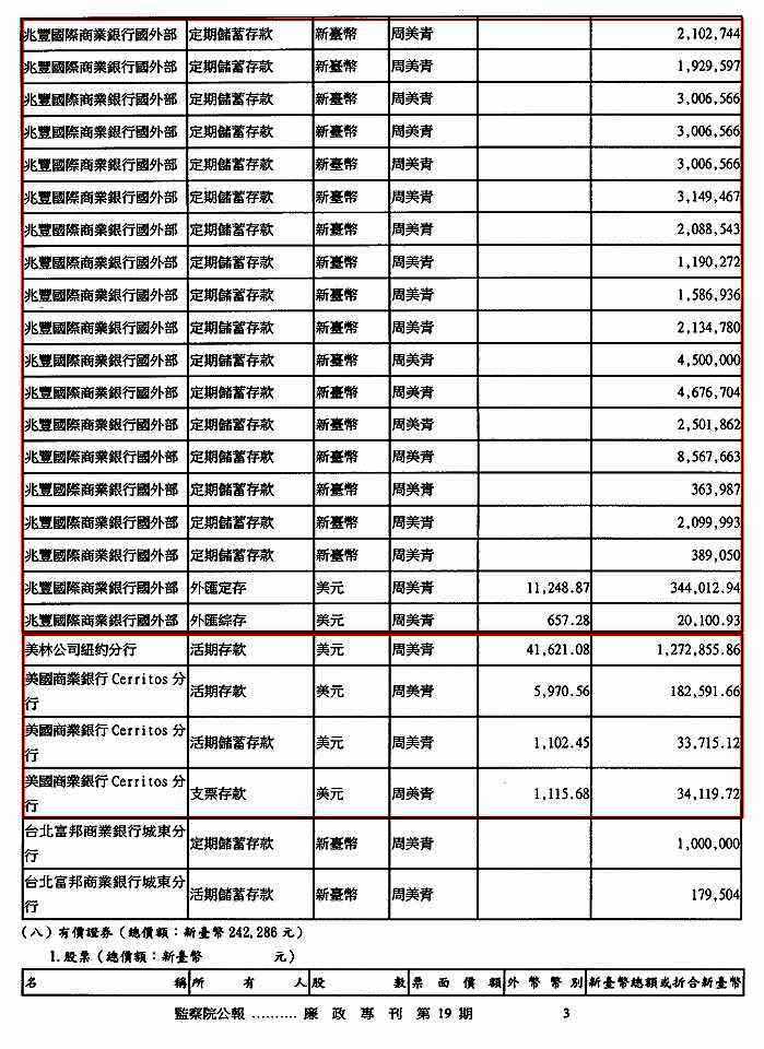 周美青這三年來沒在工作,馬家三年來卻多了二千萬存款【註】。如果這沒問題,那蘇嘉全這三年義務在民進黨工作,蘇家縱使存款增多,又有什麼問題呢?