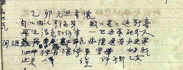 首先,我們看這首詩的寫作年份,「乙卯」是1915年,賴和那時22歲。前一年,他才從台北總督府醫學校畢業,到我們嘉義的醫院工作。乙卯這年,賴和訂了親,直到11月才與西勢仔庄王浦先生四女王氏草結婚。