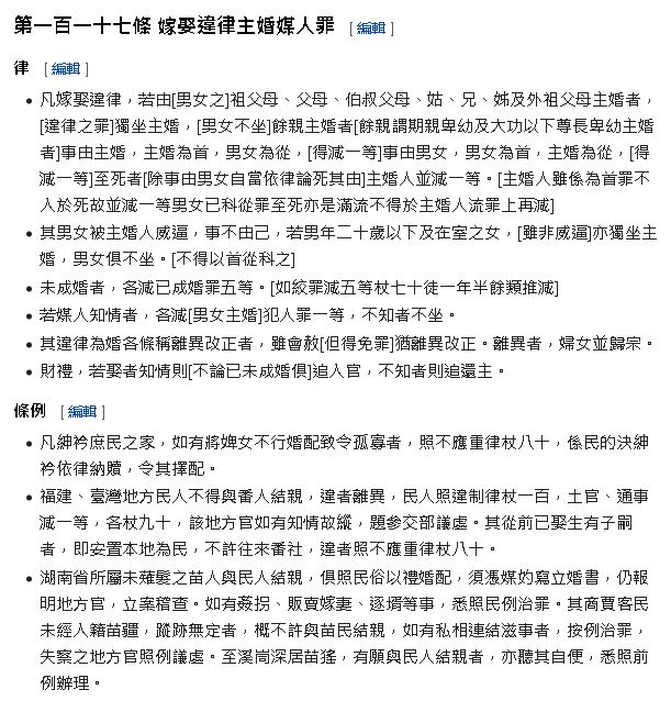 《大清律例》因而嚴格禁止唐山人跟台灣人通婚,如果有發生這種事,不但要強制離異,包括地方官員與通事都要連坐處罰【註二】,即使偶有像蝶妹與阿杰這樣的特例,以當時的社會環境來看,也很難發生大規模族群通婚,產下「新台灣人」導致「有唐山媽,無唐山公」的情況。