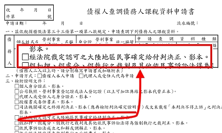 第一個是:債權人查調債務人課稅資料申請書